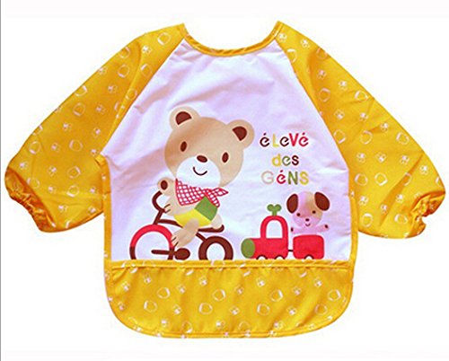 - かわいい動物柄長袖食事用エプロンです。