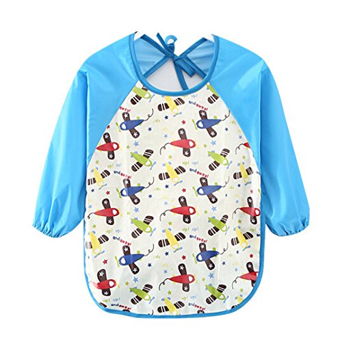 嬉しいキャッチポケット付ベビーエプロンです。 素材:前身部分:綿、TPU。 袖部分:ポリエステル。