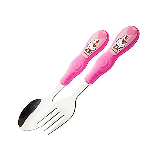 Zak! Hello Kitty Baby Easy Grip Fork and Spoon Children's Flatware - Stainless Steel and Plastic [並行輸入品]