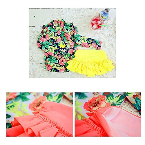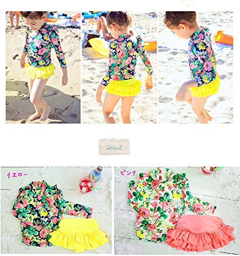 【ノー ブランド品】セパレート花柄水着 3点セット (2XL, イエロー)