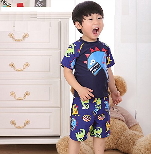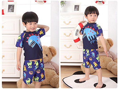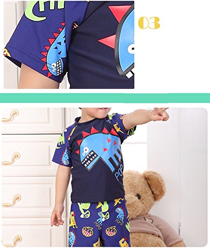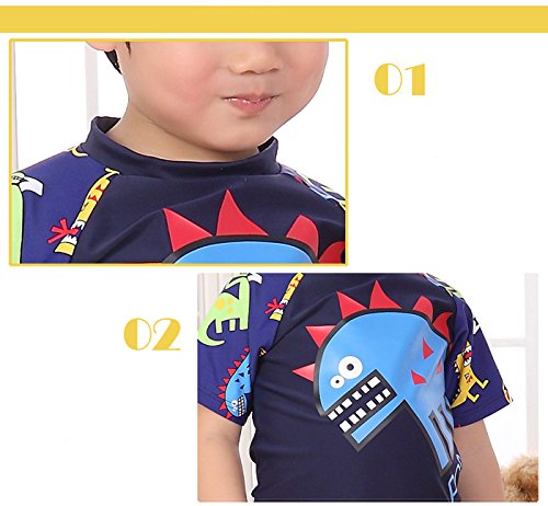 【ノーブランド品】 男の子に大人気の恐竜柄!! 子供用 水着 男の子用 恐竜柄 サーフィン サーフパンツ UV対策 紫外線対策 ボーイズ キッズ用 温泉用 フィットネス 帽付き パンツマリンスポーツ 速乾上下セット+帽子 3点セット Sunny Corner (110, ネイビー)