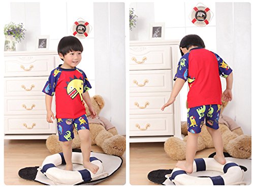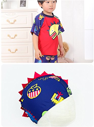 【ノーブランド品】 男の子に大人気の恐竜柄!! 子供用 水着 男の子用 恐竜柄 サーフィン サーフパンツ UV対策 紫外線対策 ボーイズ キッズ用 温泉用 フィットネス 帽付き パンツマリンスポーツ 速乾上下セット+帽子 3点セット Sunny Corner (140, レッド)