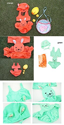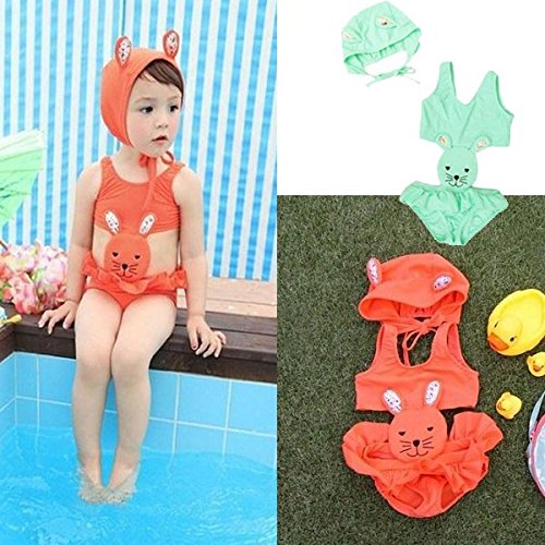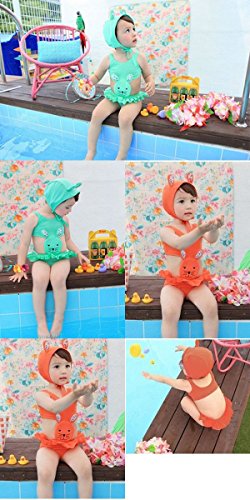 即納(韓国スタイル子供服) ビキニ キッズ 女の子用水着 みずぎ 超可愛いウサギタイプ 帽子付三点セットSandy beach 全2色 green,130