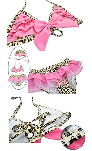 即納(韓国スタイル子供服) ビキニ 水着 キッズ 女の子 みずぎ ヒョウ柄 ピンクフリルレオパード帽子三点セット 130,Leopard