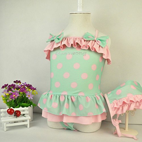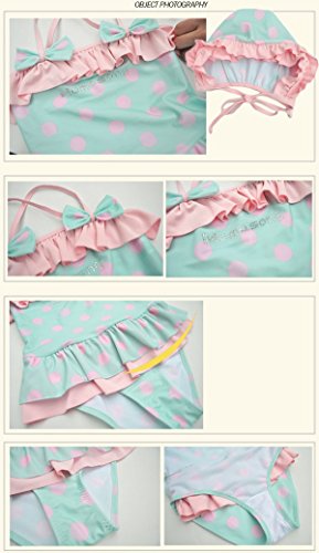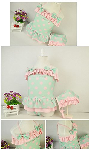 (韓国スタイル子供服) ビキニ キッズ 水着 子供 女の子 ワンピビキニ 可愛い水玉柄 フリル リボン付き 帽子付き二点セット green,140cm