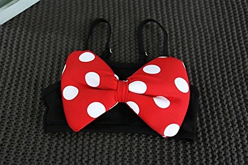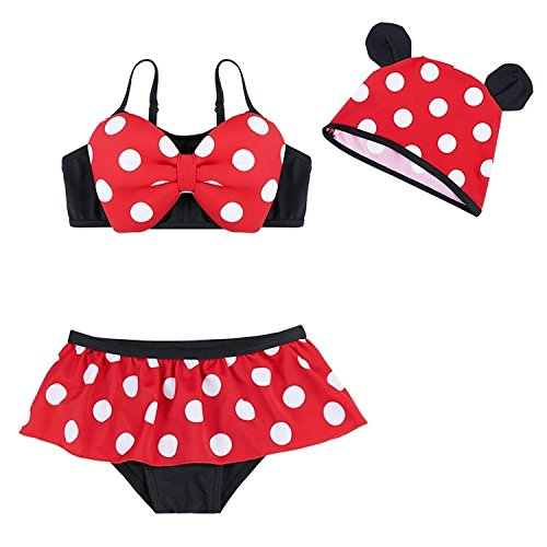水着 ミニー 可愛い 大きなリボン 水玉 セパレーツ セパレート 帽子 三点セット (90 (S))