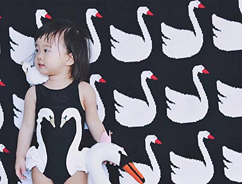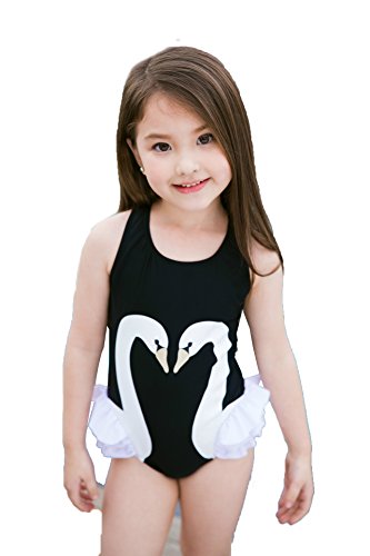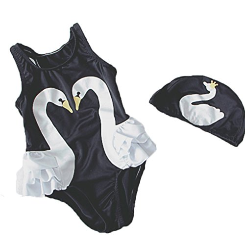 女の子 水着 スワン白鳥柄 連体 女児 赤ちゃん ベビー 子供ミズギ スイミングウェア キュート ワンピース水着 キャップ付き (身長85-95cm)