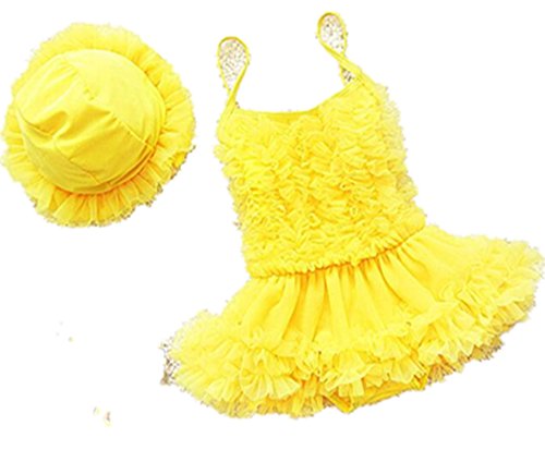 9406子供水着 女児 女の子用ワンピース水着 ベビー水着キッズみずぎ スイミング ウェア ジュニア 小学生 (2XL, 黄色)