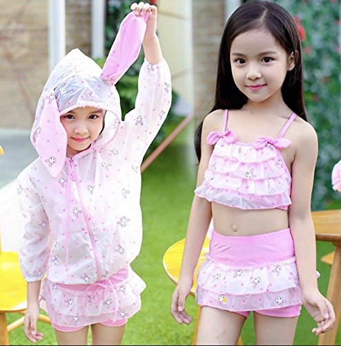 可愛うさぎちゃんの水着三点セット登場した!! UVカットにもなっていて、とても安心できる。 上下別々になっていて、着る時便利!! Lサイズ:年齢6~7 身長115~125 体重40~50 XLサイズ:年齢8~9 身長125~135 体重50~60
