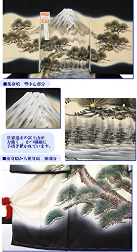 宮参り着物 -72- 正絹 祝着 お宮参り 男 着物 男の子 初着 百日祝い シルク100% 日本製 黒 富士山 手描き 友禅