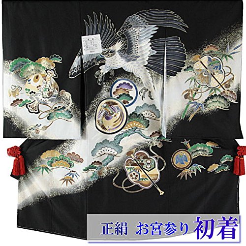 宮参り着物 -105- 正絹 祝着 お宮参り 男 着物 男の子 初着 百日祝い シルク100% 日本製 黒 鷹