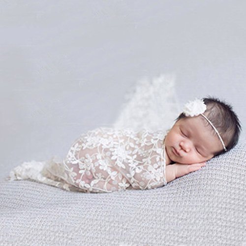 【ノーブランド 品】赤ちゃん 柔らかい 絹 レース トリム 写真撮影 小道具 ラップ 全11色 - ホワイト