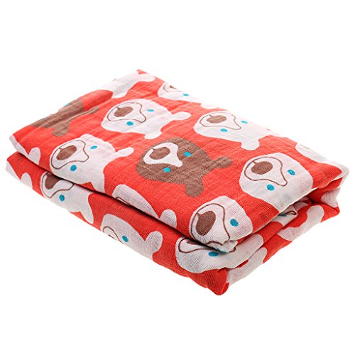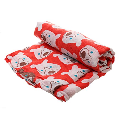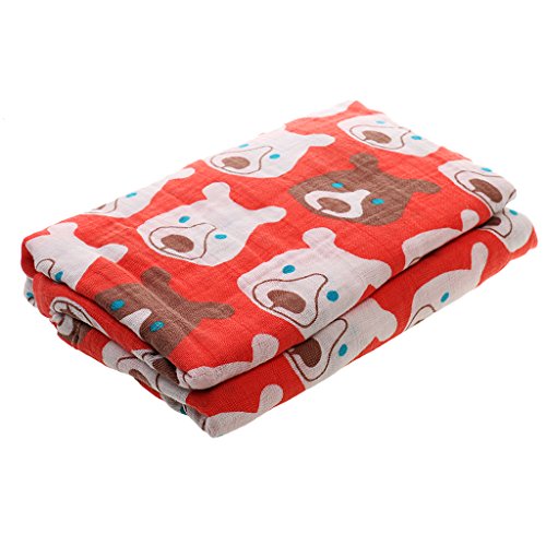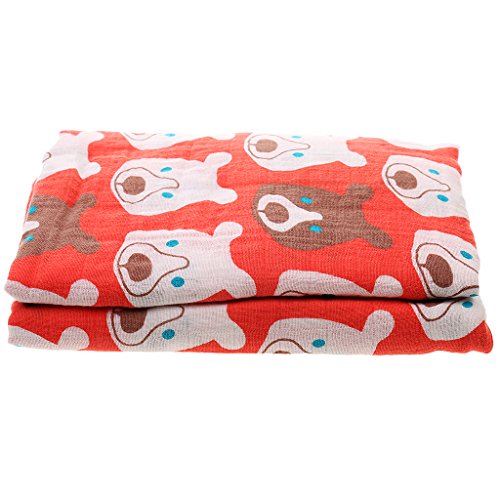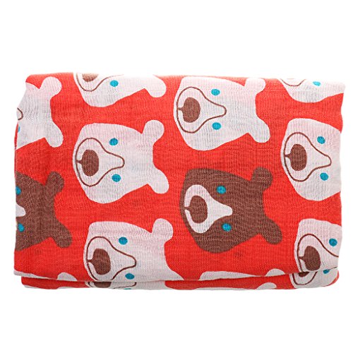 ノーブランド品 ベビー 新生児 モスリン コットン 二層 ブランケット ラップ 毛布 バスタオル おくるみ 柔らかい 快適 ソフト 全7パタン選べる - レッドベア