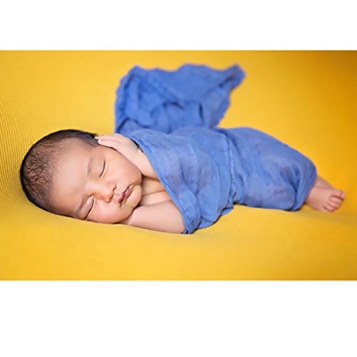 ノーブランド品 ベビー 新生児 写真撮影 小道具 ファブリック ラップ ブランケット 毛布 おくるみ 柔らかい 敷物 伸縮性 全10色選べる - サファイアブルー