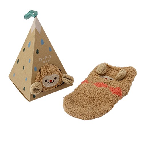 【ノーブランド品】かわいい 赤ちゃん 柔らかい 暖かい ふわふわ ベッドソックス スリッパ 幼児 靴下 猿のパターン 1-4歳
