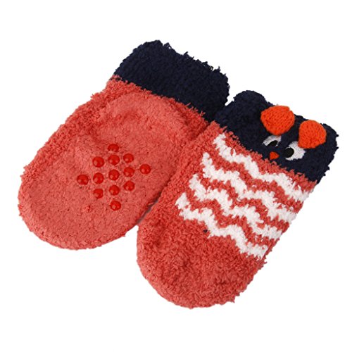 【ノーブランド品】かわいい 赤ちゃん 柔らかい 1-4歳 暖かい ふわふわ ベッドソックス スリッパ 幼児 靴下 フクロウパターン