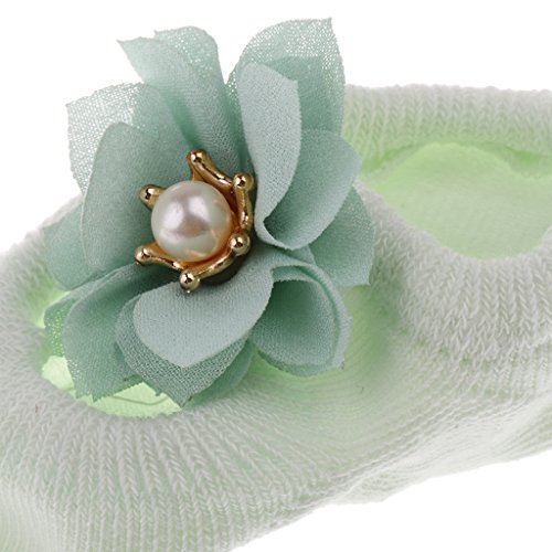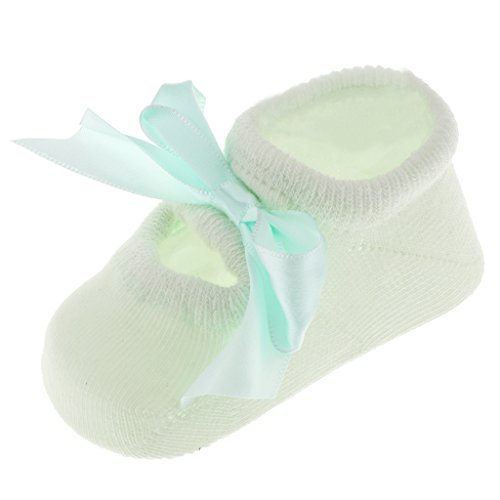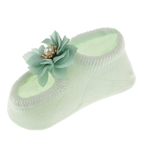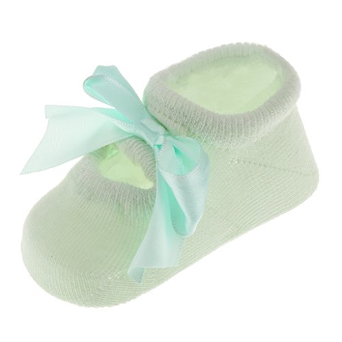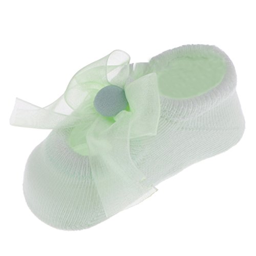 ノーブランド品 全2サイズ6色 3ペア かわいい 女の子 男の子 ベビー レース 滑り止め 靴下 スリッパ ソックス - 緑, L