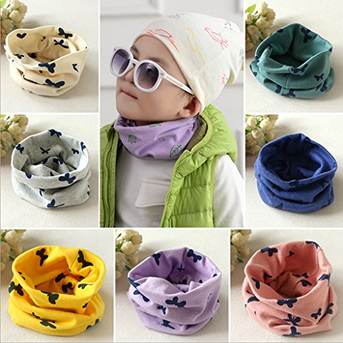 ノーブランド品 子供 キッズ 冬 暖かい ソフト 綿 ショール スカーフ ネッカチーフ マフラー ネックウォーマ 蝶のパタン ギフト 全6色選べる - ピンク, 40 * 40センチメートル