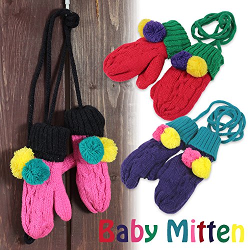【ノーブランド品】 ベビーカラフルミトン手袋 ポンポン付き ひも付き 1歳~2歳 パープル