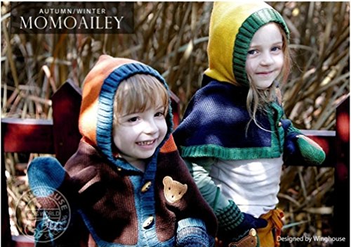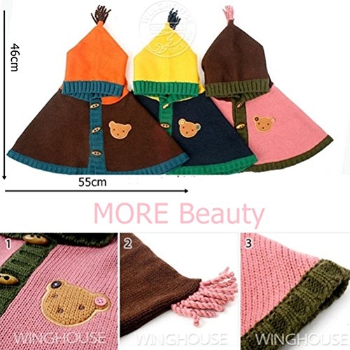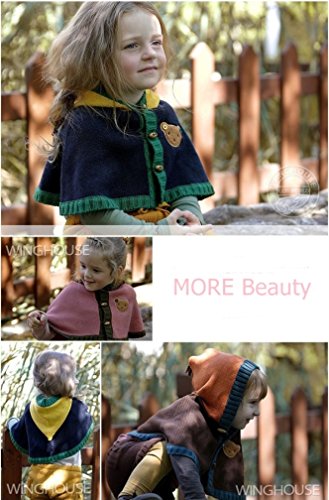 肩や背中まで暖かいフード付きポンチョ!!胸のクマとダッフルボタンがおしゃれ♪