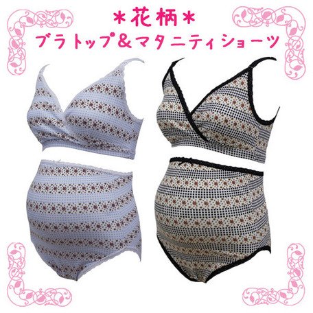 マタニティ用下着 肌着 レディース マタニティ・ママ マタニティハーフトップ マタニティショーツ セット 綿混 花柄 ハーフトップ ブラジャー ショーツ ベビー マタニティ