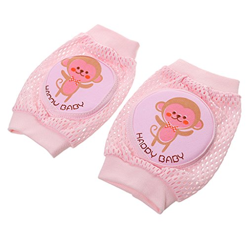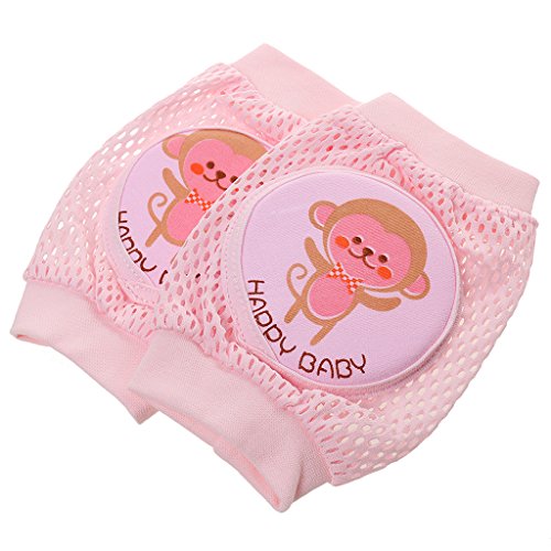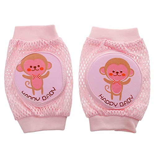 ノーブランド品 赤ちゃん 子供 綿 柔らかい 滑り止め ひざあて 膝パッド ウォーマー プロテクター 肘クッション ケガ防止 可愛い 全3色4パタン選べる - ピンク, 猿