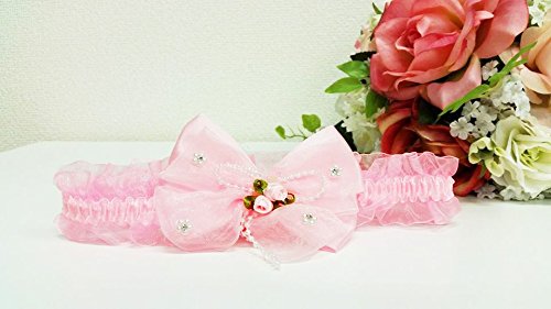 ベビー/赤ちゃん/ヘアアクセサリー/カチューシャ/ヘアバンド/リボンフラワー/ピンク/ミニローズ付き、 ゴムの部分はピンクのヒラヒラレース サイズ:フリー 伸縮性ゴム使用、直径約20cm、幅約3.5cm
