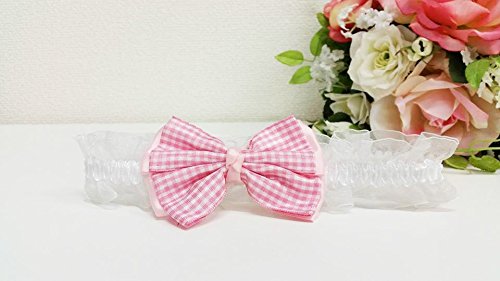 ベビー/赤ちゃん/ヘアアクセサリー/髪飾り/カチューシャ/ヘアバンド/リボン/チェック/ピンク、 ゴムの部分は白いヒラヒラレース♪サイズ:フリー 伸縮性ゴム使用、直径約20cm、幅約3.5cm