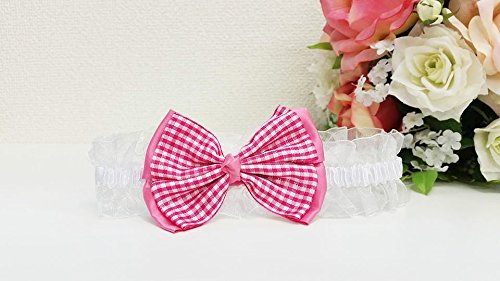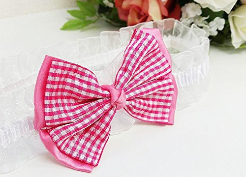 ベビー/赤ちゃん/ヘアアクセサリー/カチューシャ/ヘアバンド/リボン/チェック/マゼンタピンク、 ゴムの部分は白いヒラヒラレース♪サイズ:フリー 伸縮性ゴム使用、直径約20cm、幅約3.5cm