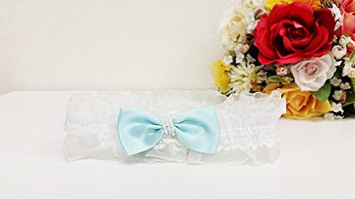ベビー/赤ちゃん/ヘアアクセサリー/カチューシャ/ヘアバンド/リボン/水色 ゴムの部分は白いヒラヒラレース♪ サイズ:フリー 【対象年齢】:0~6歳 伸縮性ゴム使用、直径約20cm、幅約5cm