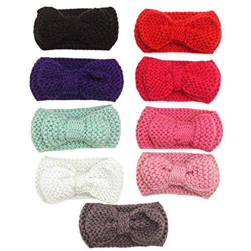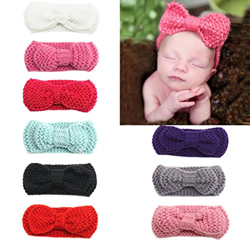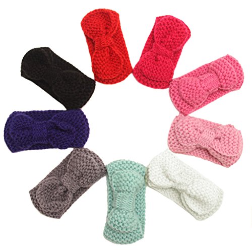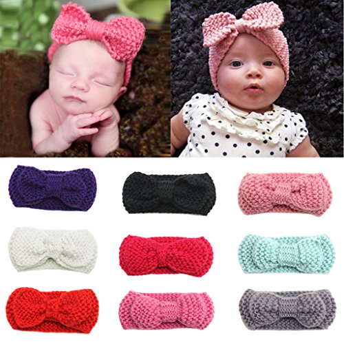 ノーブランド品 2PCS 幼児 赤ちゃん 蝶結び 弾性 かぎ針 編み ターバン ヘアバンド ヘッドバンド カチューシャ 5色選べる - 白