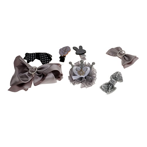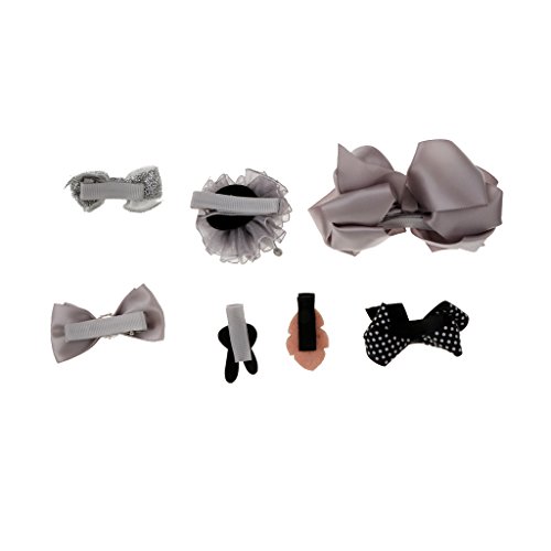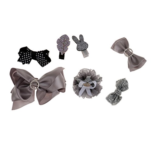 ノーブランド品 7個入り リボン 赤ちゃん ヘアクリップ ヘアピン クラウン 蝶結び ヘアアクセサリ 髪飾り 髪留め 全5色選べる - グレー