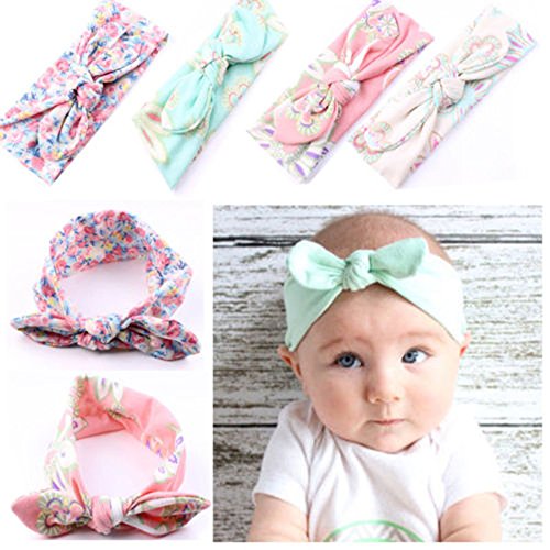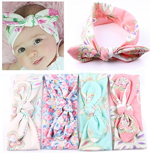 ノーブランド品 赤ちゃん 女の子 花 ウサギの耳 ヘアバンド ターバン ヘッドバンド 飾り 髪留め 2個 2色選べる - 緑
