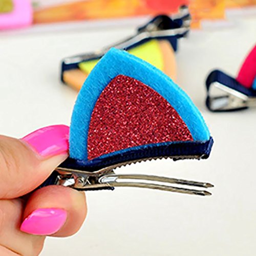 ノーブランド品 赤ちゃん 女性 女の子 髪飾り 髪留め ウサギ 猫耳 ネコ耳 ヘアクリップ フェルト 可愛い 全7色選べる - ブルー+レッドローズ