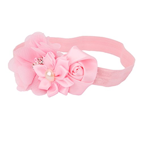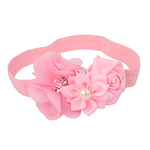 ノーブランド品 赤ちゃん 女の子 弾性 写真撮影 小道具 ヘアバンド 髪飾り ヘッドバンド 花 全12色選べる - ピンク