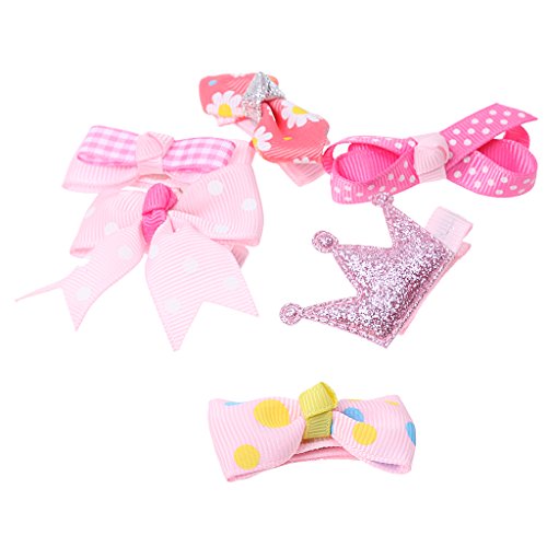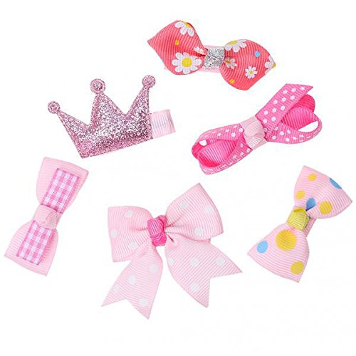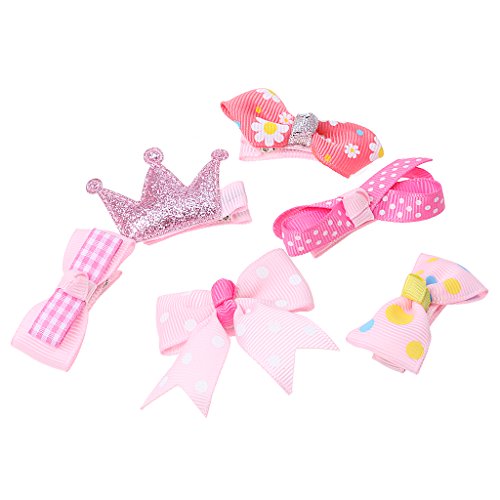 ノーブランド品 女の子 子供 ヘアアクセサリー 混合 リボン 蝶結び ヘアピン ヘアクリップ 髪飾り 12PCS - ピンク