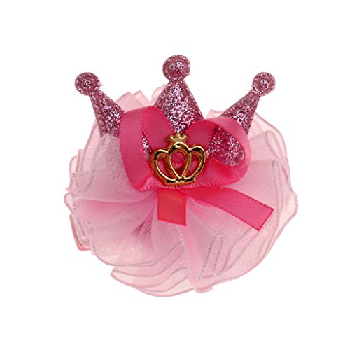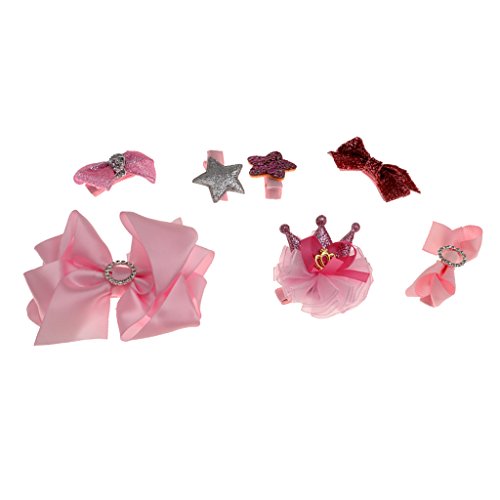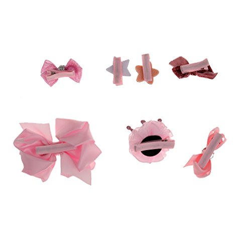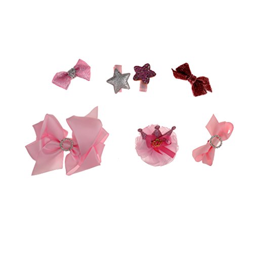 ノーブランド品 7個入り リボン 赤ちゃん ヘアクリップ ヘアピン クラウン 蝶結び ヘアアクセサリ 髪飾り 髪留め 全5色選べる - ピンク