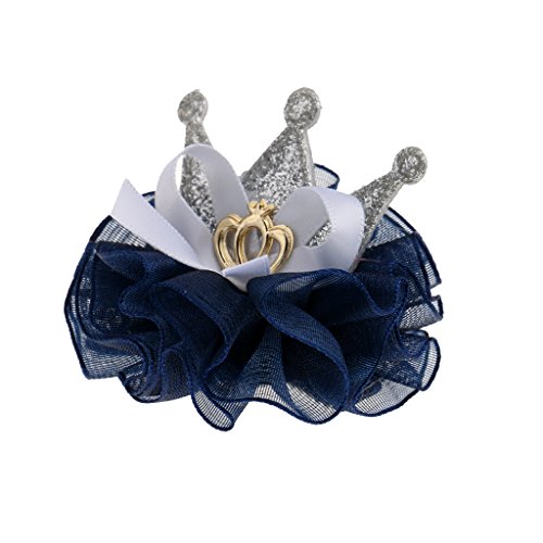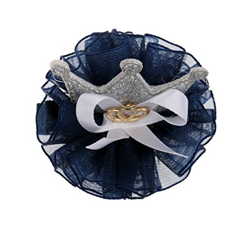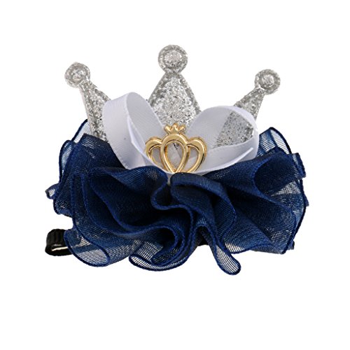 ノーブランド品 女の子 赤ちゃん パーティー ファブリック ヘアクリップ ヘアピン クラウン ボウ ヘアアクセサリー 髪留め 髪飾り 全4色選べる - 濃紺