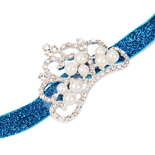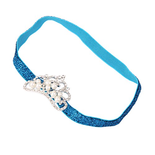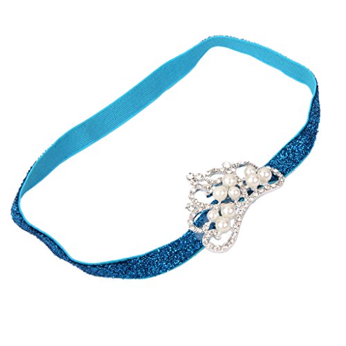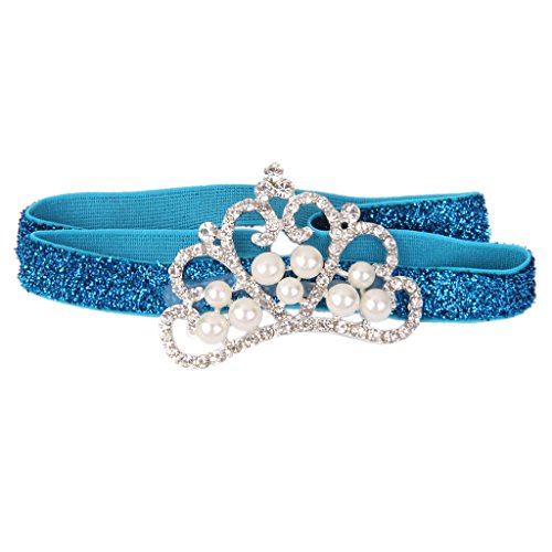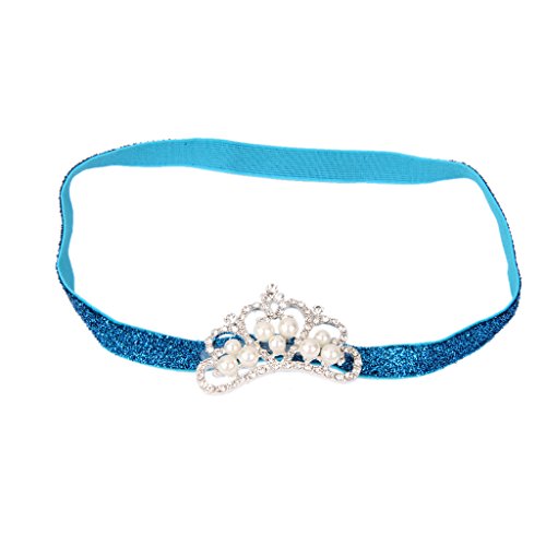 ノーブランド品 幼児 赤ちゃん 弾性 ラインストーン パール クラウン 王冠 ヘッドバンド ヘアバンド ターバン 写真撮影 全7色選べる - ブルー
