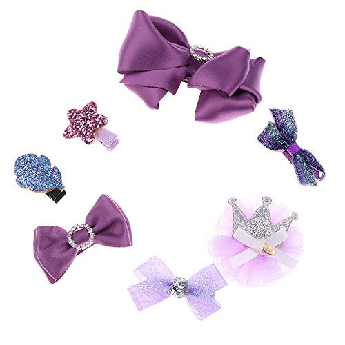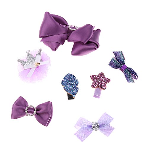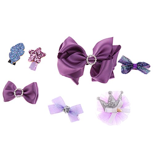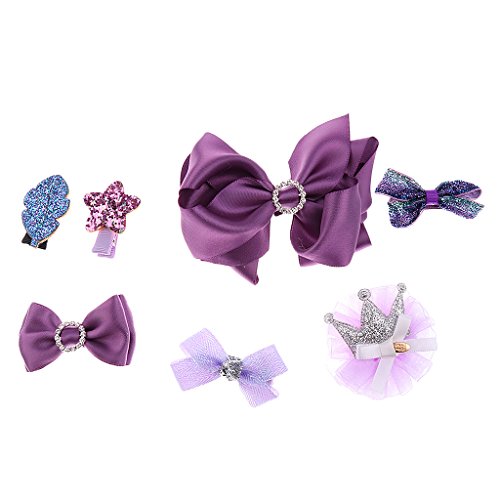ノーブランド品 7個入り リボン 赤ちゃん ヘアクリップ ヘアピン クラウン 蝶結び ヘアアクセサリ 髪飾り 髪留め 全5色選べる - 紫