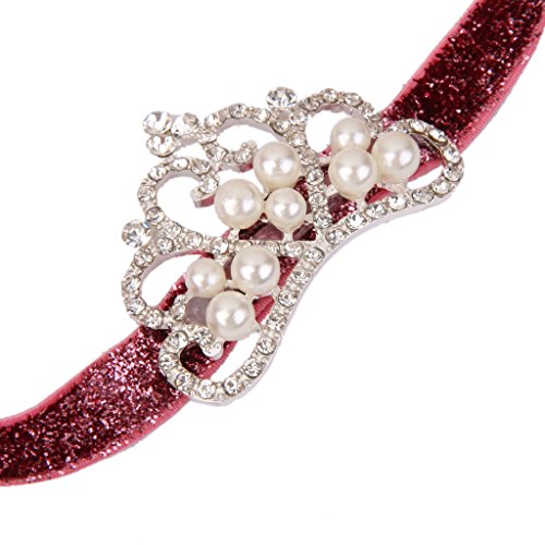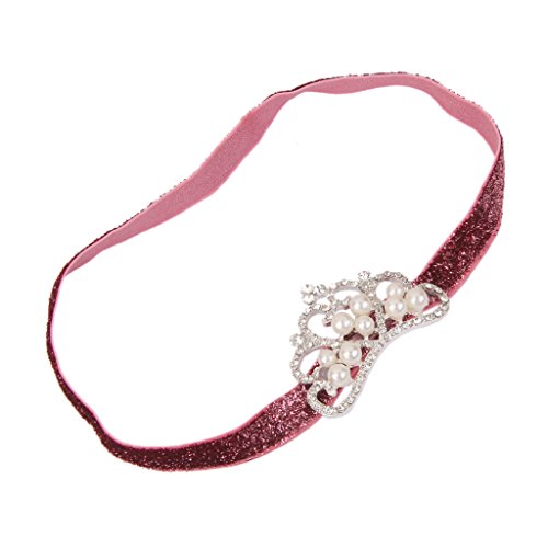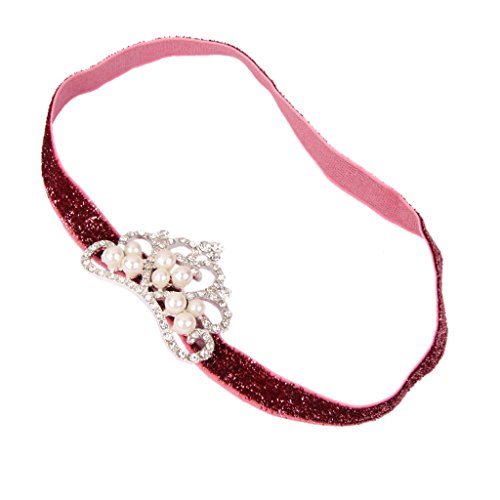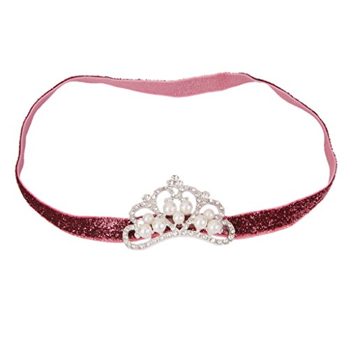 ノーブランド品 幼児 赤ちゃん 弾性 ラインストーン パール クラウン 王冠 ヘッドバンド ヘアバンド ターバン 写真撮影 全7色選べる - 赤