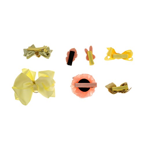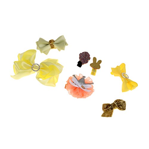 ノーブランド品 7個入り リボン 赤ちゃん ヘアクリップ ヘアピン クラウン 蝶結び ヘアアクセサリ 髪飾り 髪留め 全5色選べる - 黄