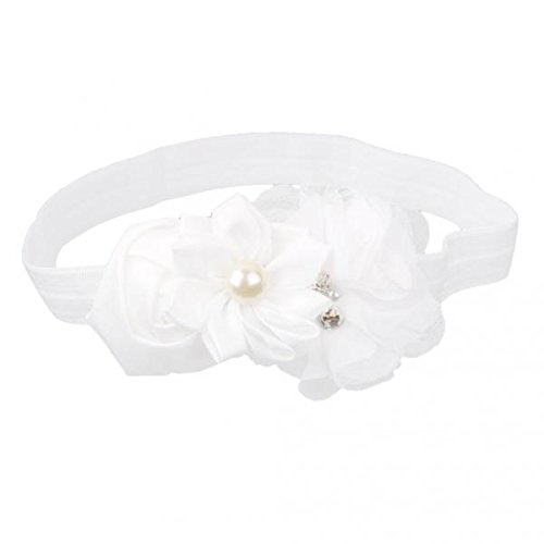 ノーブランド品 2PCS 赤ちゃん 女の子 弾性 写真撮影 小道具 花 ヘッドバンド ヘアバンド ターバン 髪飾り 贈り物 5色選べる - 白