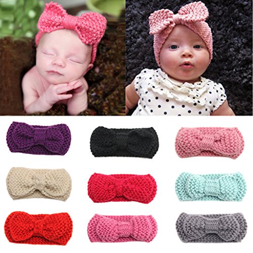 ノーブランド品 2PCS 幼児 赤ちゃん 蝶結び 弾性 かぎ針 編み ターバン ヘアバンド ヘッドバンド カチューシャ 5色選べる - グレー