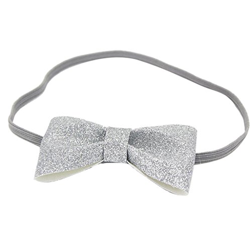 ノーブランド品 2個 赤ちゃん 弾性 ヘッドバンド ヘアバンド ターバン 蝶結び 帽子 頭飾り 2色選べる - 銀