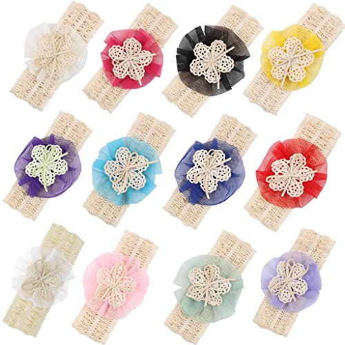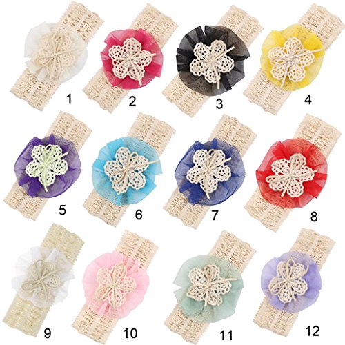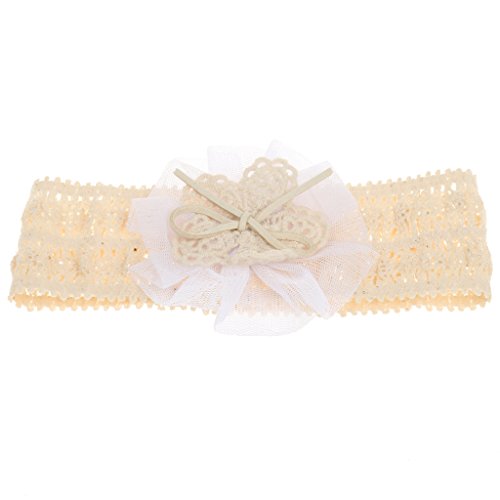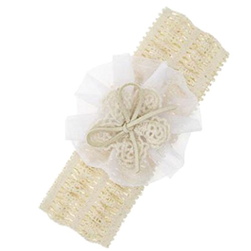 ノーブランド品 2個 レース フラワー キッズ 赤ちゃん ヘッドバンド ヘアバンド ターバン ギフト 2色選べる - ホワイト