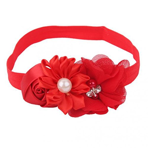 ノーブランド品 2枚 赤 花 赤ちゃん 女の子 写真撮影 ヘアバンド ヘッドバンド ターバン