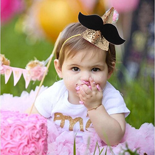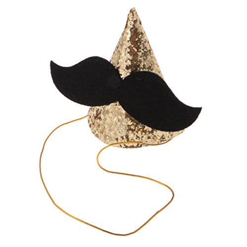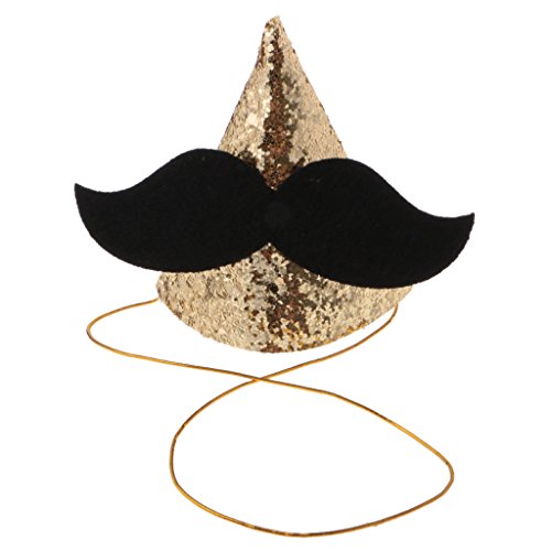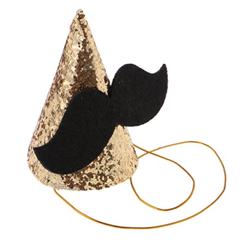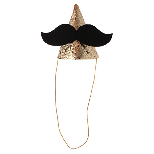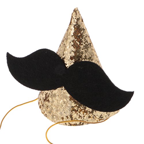 - 大きな黒い口ひげの装飾とキラキラのスパンコールのかわいい赤ちゃんパーティーコーンの帽
