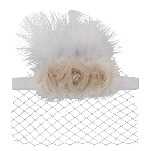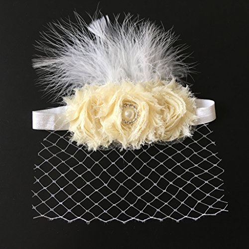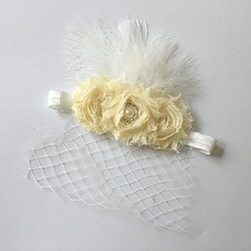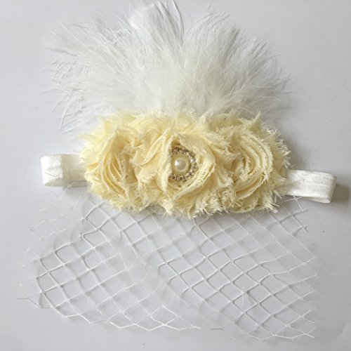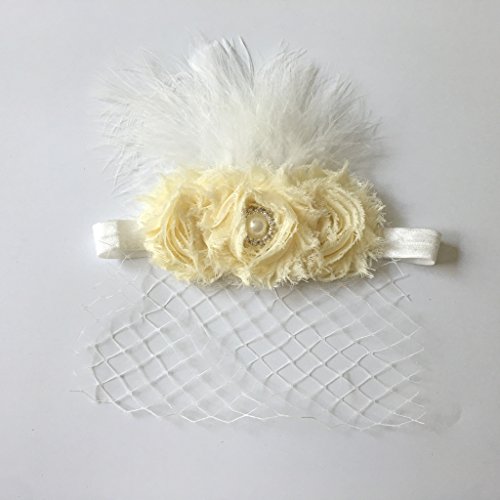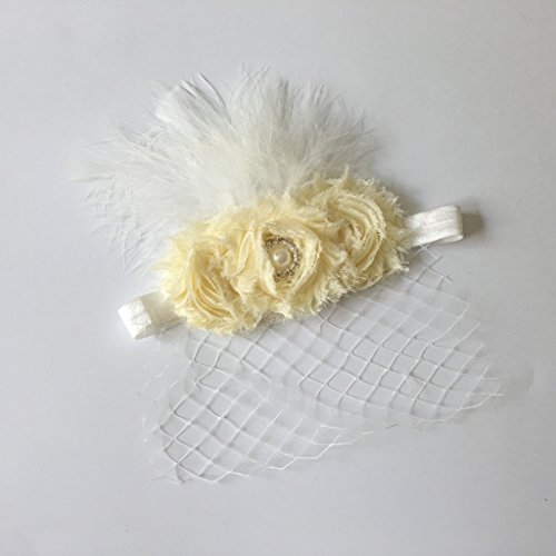- 平滑な羽とかわいいベール、大きなベージュの花が飾られています