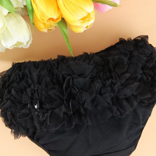 【ノーブランド品】黒 女の赤ちゃん ラッフル パンティー ブルマー おむつ カバー S